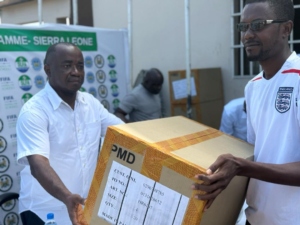 In a bold and inspiring display of leadership, the President of the Sierra Leone Football Association (SLFA), ๐๐๐๐๐๐ข ๐๐๐ฆ๐๐ซ๐, today, Saturday November 15th, led the official launch of the ๐ ๐๐ ๐ ๐ ๐จ๐จ๐ญ๐๐๐ฅ๐ฅ ๐ ๐จ๐ซ ๐๐๐ก๐จ๐จ๐ฅ๐ฌ (๐ ๐๐) ball distribution exercise at the SLFA Secretariat in Kingtom, Freetown. The initiative forms part of President Kamaraโs continued commitment to reviving grassroots football and strengthening the connection between education and the beautiful game.